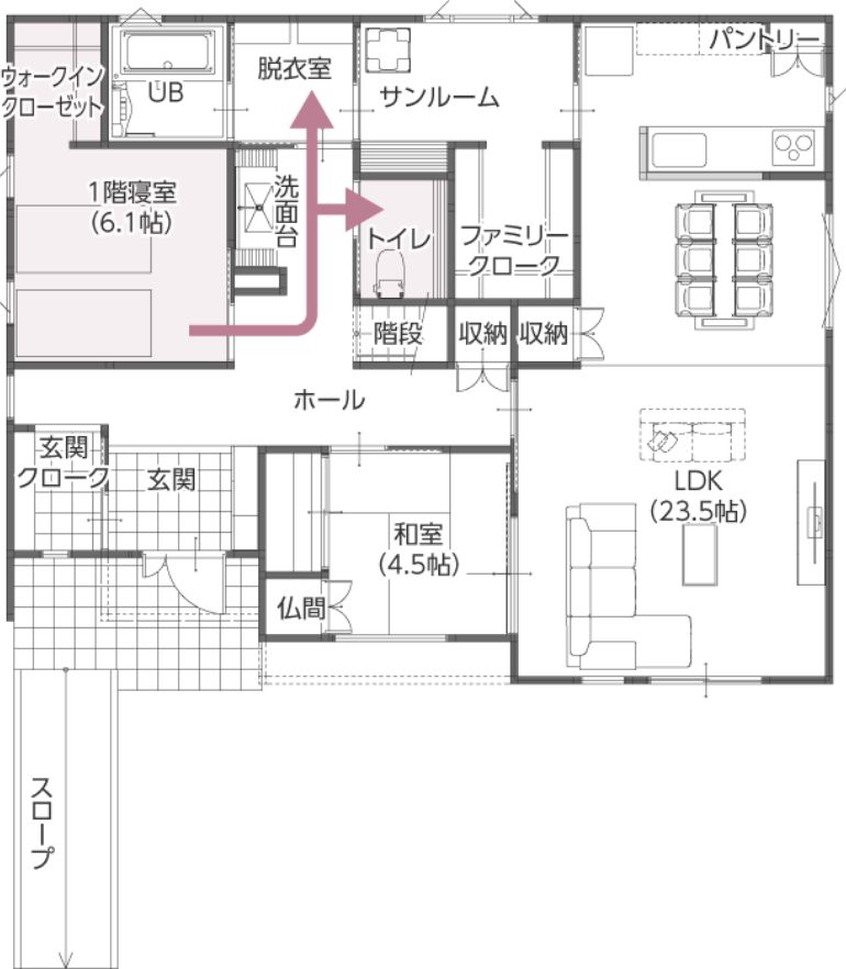 1F 帰宅動線