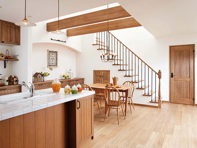 ホーローシンク&タイルトップキッチン/オリジナル洗面台/洋風瓦/塗り壁/木製ドア/天然無垢床/1・2階暖房便座ウォシュレットトイレ/全室LED照明/アルミ樹脂サッシ