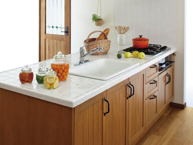 プロヴァンス気分いっぱいの、ホーローシンク・タイルトップのオリジナルキッチン!