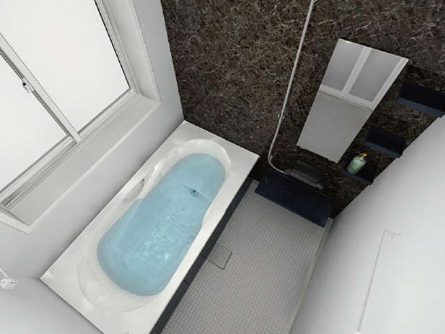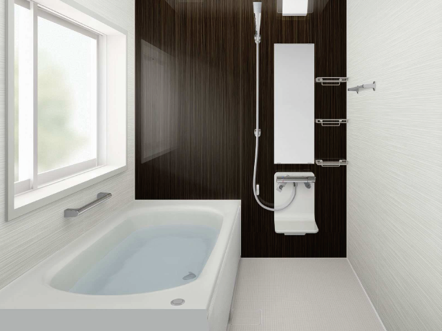 Type.B滑りにくい安心のフロア、2タイプの選べる浴槽。4時間たっても約2.5℃しかお湯が冷めない高断熱浴槽は地球に優しくて経済的。