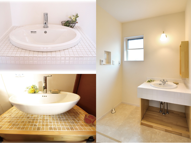 インテリアに合わせたこだわりのオリジナルの洗面台。