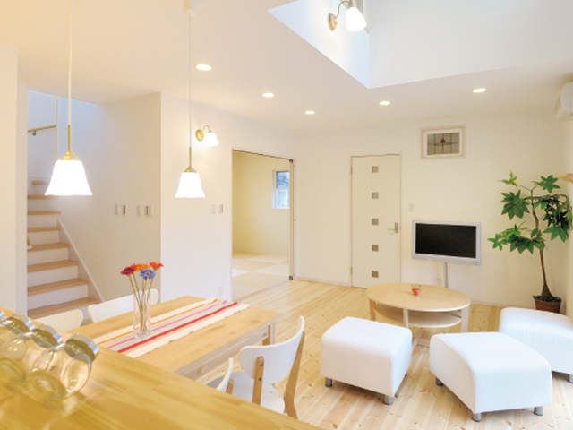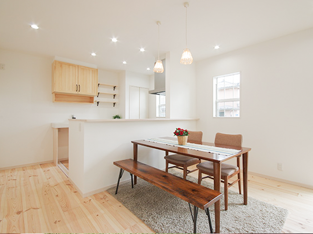 LDKは天然無垢材(パイン)のナチュラルな床材。