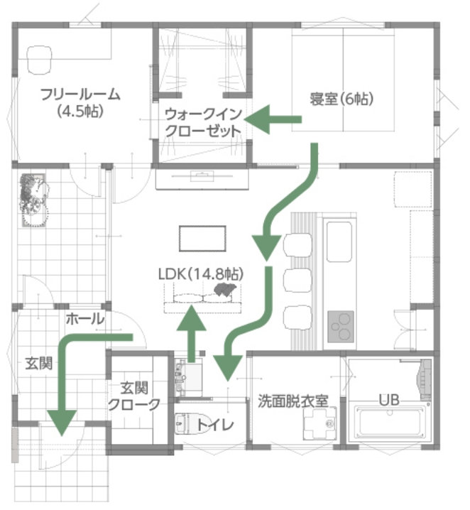 帰宅時の着替えや朝の支度がスムーズに、洗濯物をすぐ収納できるのも◎!