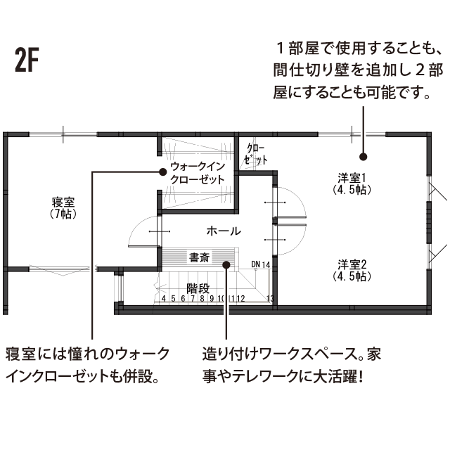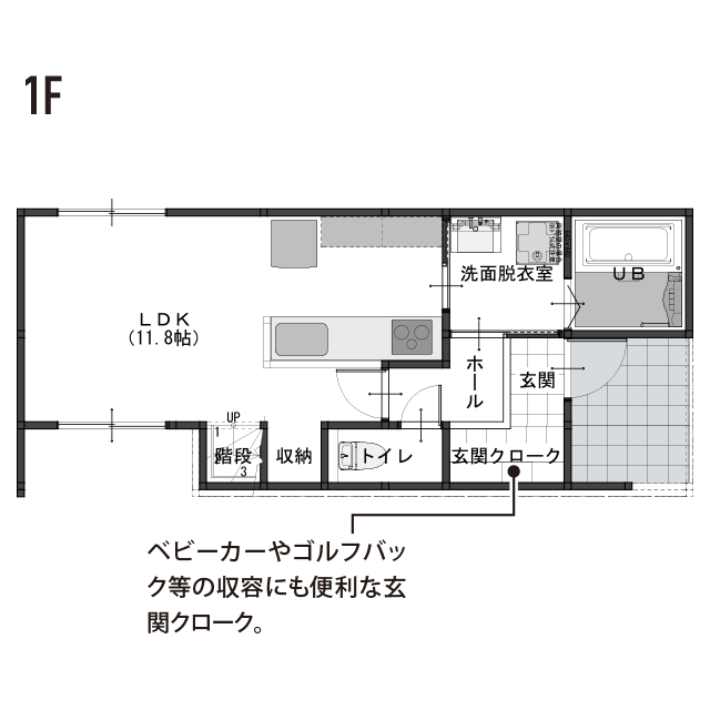 シンプルモダンなシャープな外観、限られた施工面積でも充分な間取りを確保しており、狭小地にも対応、拡張性もあるプラン。